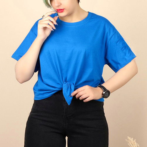 تیشرت زنانه پایین گره نخ و پنبه برند T2