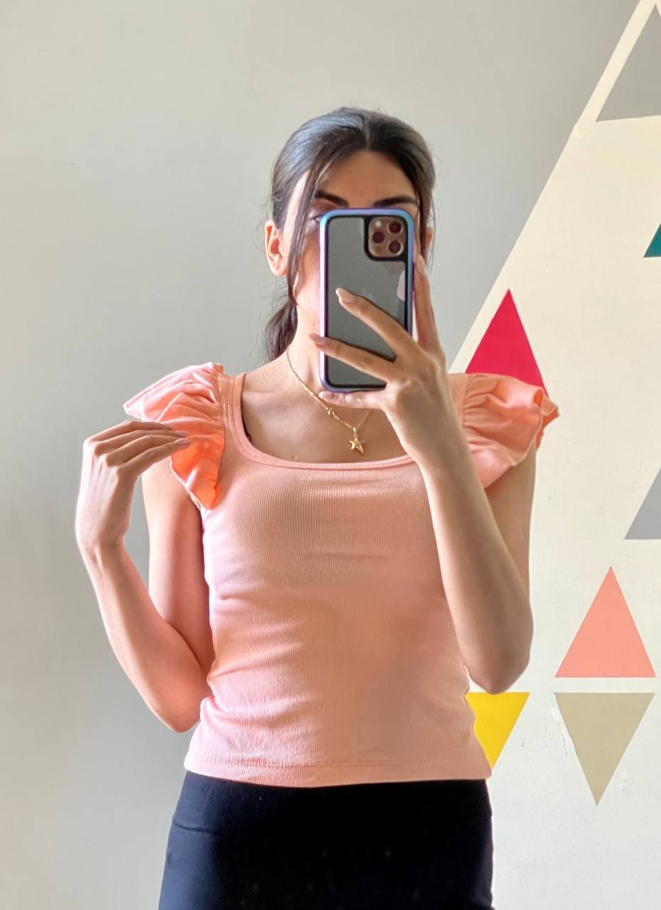 تاپ زنانه آستین کات پروانه ای لبه گیپور