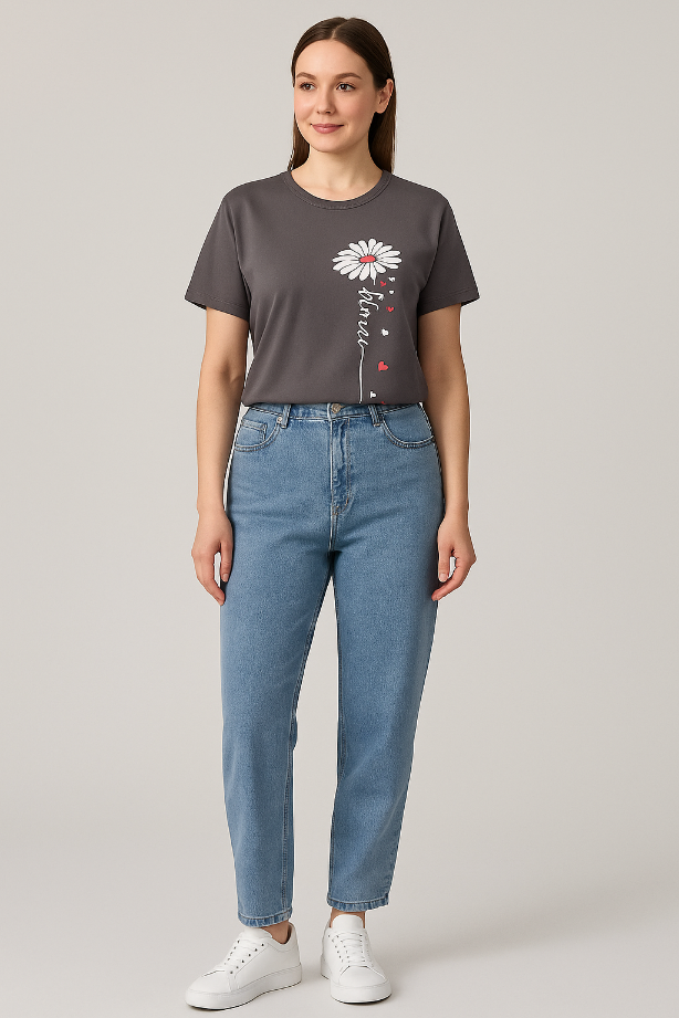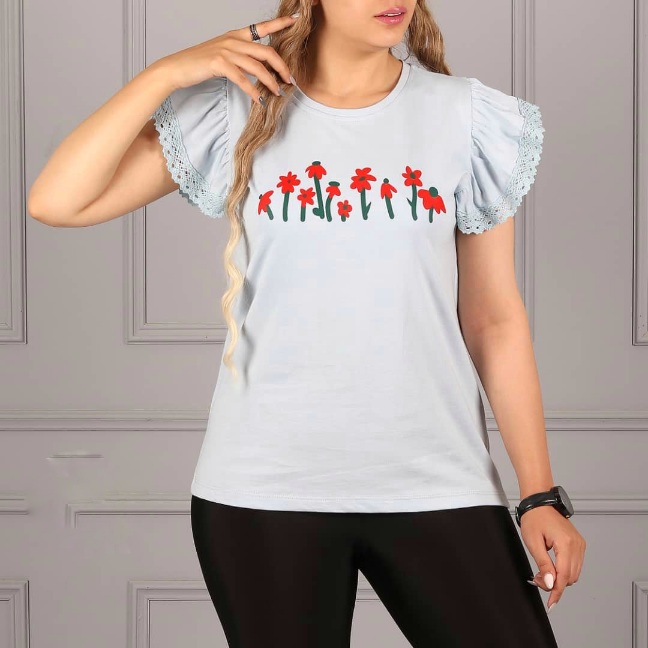 تیشرت چاپی طرح گل زنانه نخ و پنبه