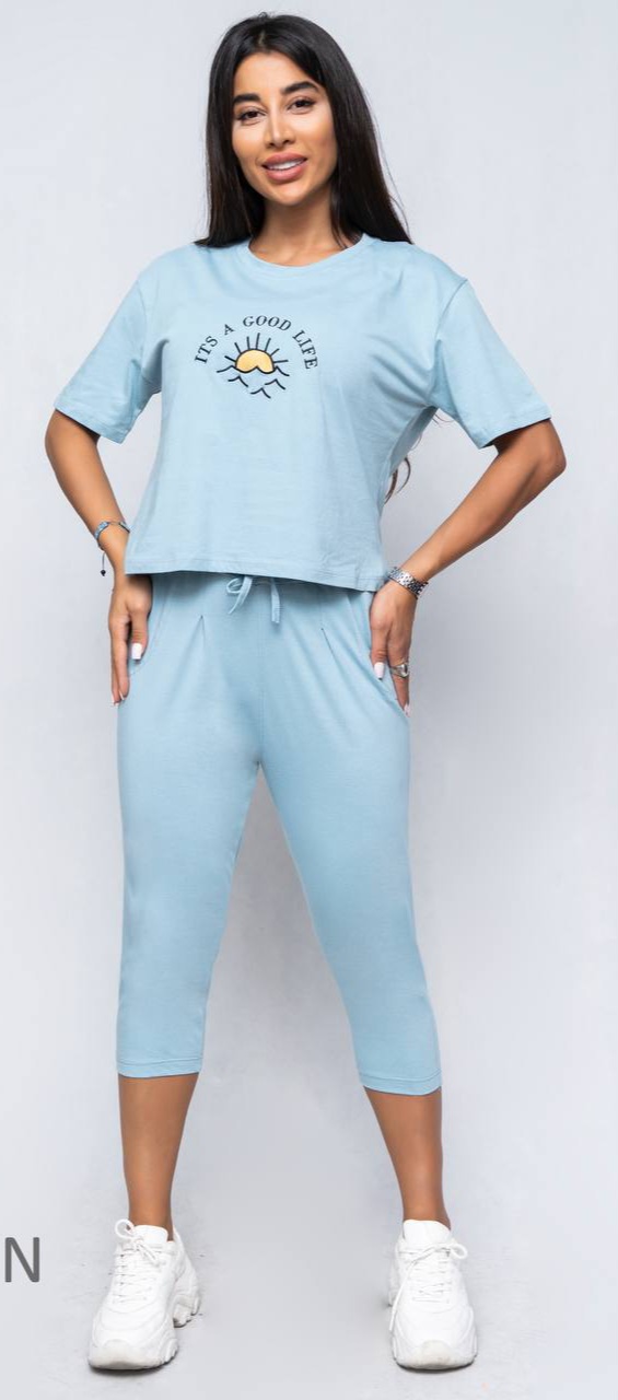 ست کراپ و شلوارک برمودا زنانه گلدوزی خورشید
