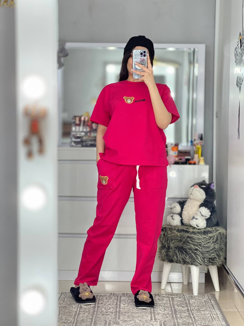 ست تیشرت و شلوارجیب دار زنانه نخ و پنبه گلدوزی خرسب