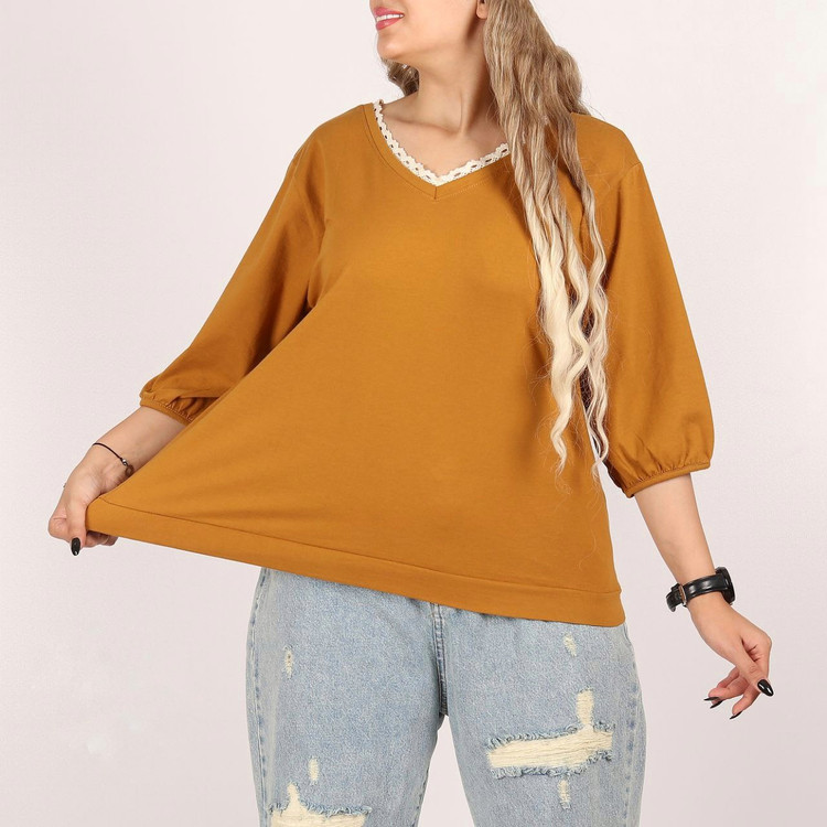 بلوز زنانه یقه کنفی آستین یه ربع برندT2
