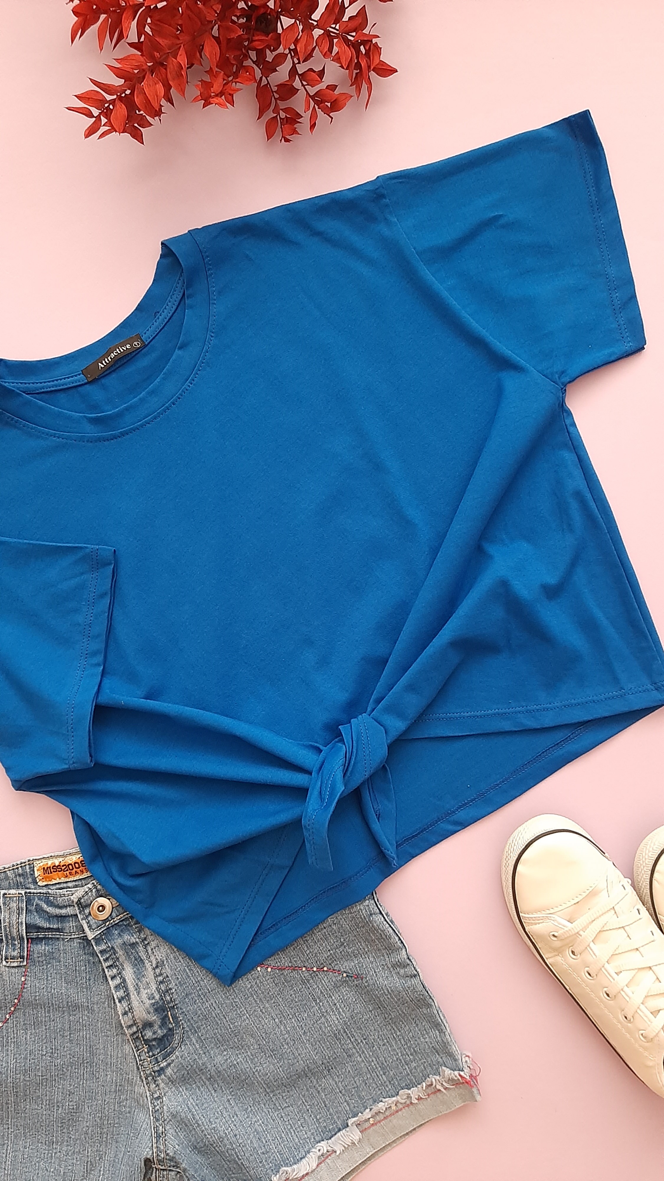 تیشرت زنانه پایین گره نخ و پنبه برند T2