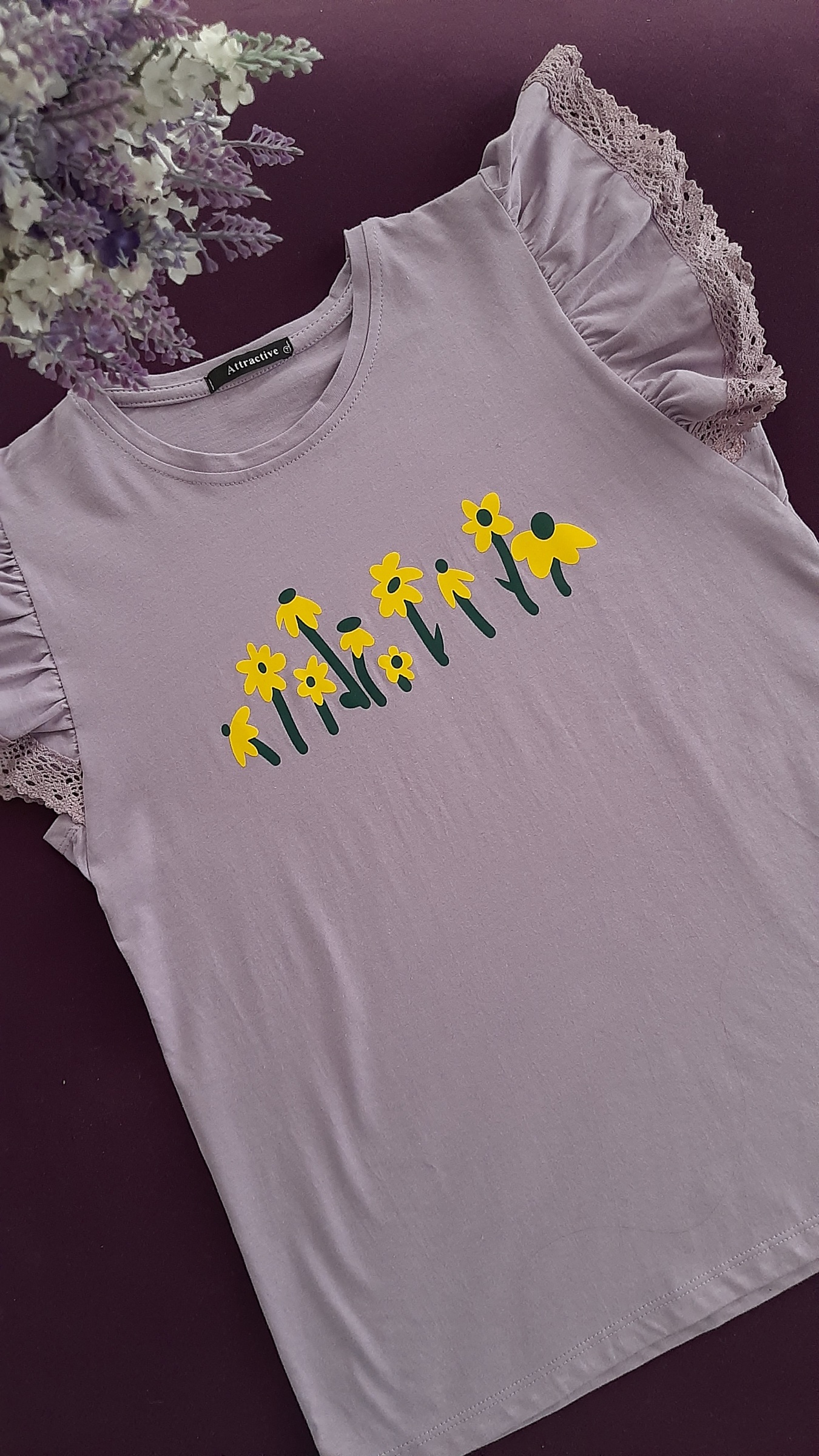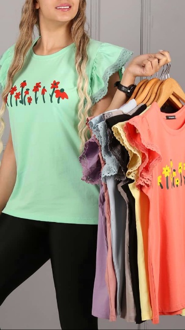 تاپ زنانه آستین کات پروانه ای لبه گیپور