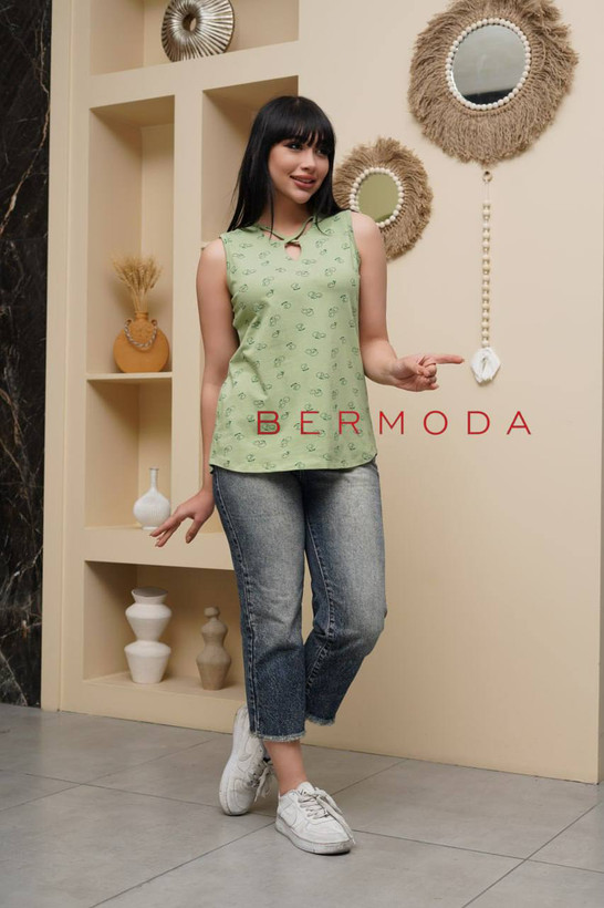 تاپ زنانه راحتی نخ و پنبه یقه کوبایی برند برمودا