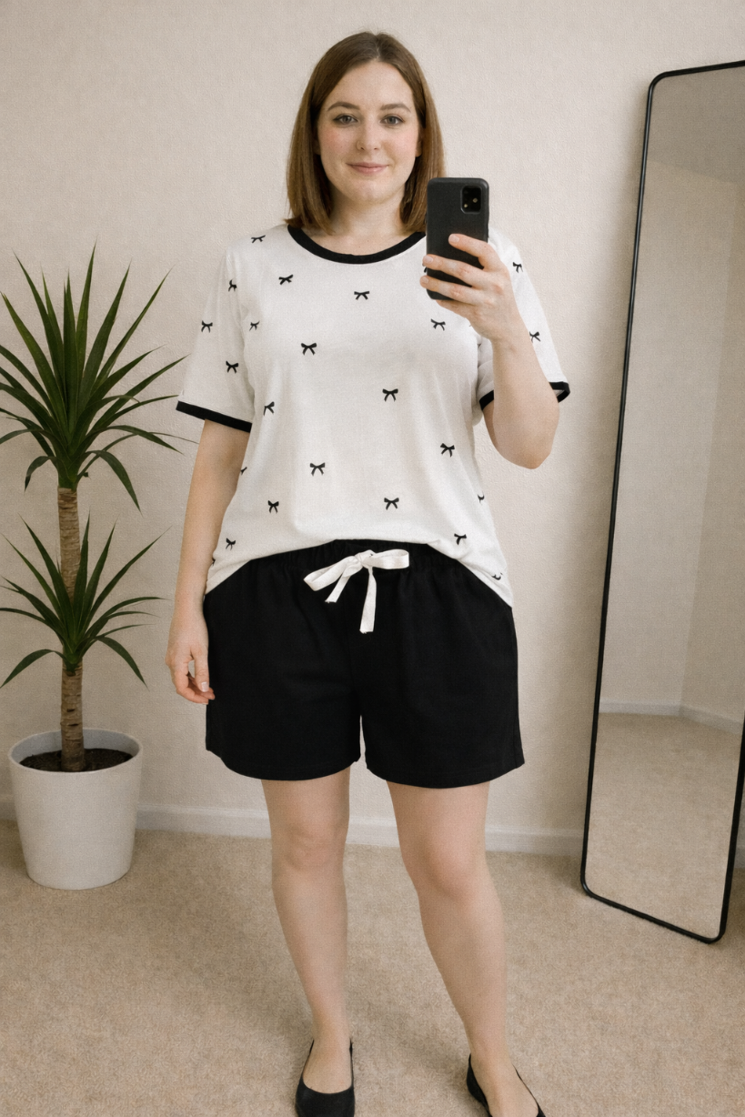 ست تیشرت و شورتک پاپیون نخ و پنبه زنانه🎀